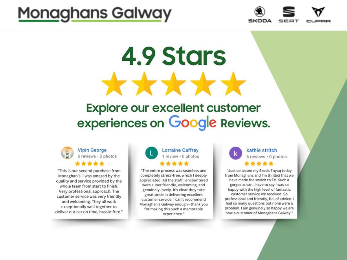 Monaghans & Sons Galway is a family business, established in 1955. Our commitment to providing our customers with the best new and used cars is underscored by the feedback from over 550 satisfied customers who have rated us an outstanding 4.9 stars on Google Reviews.