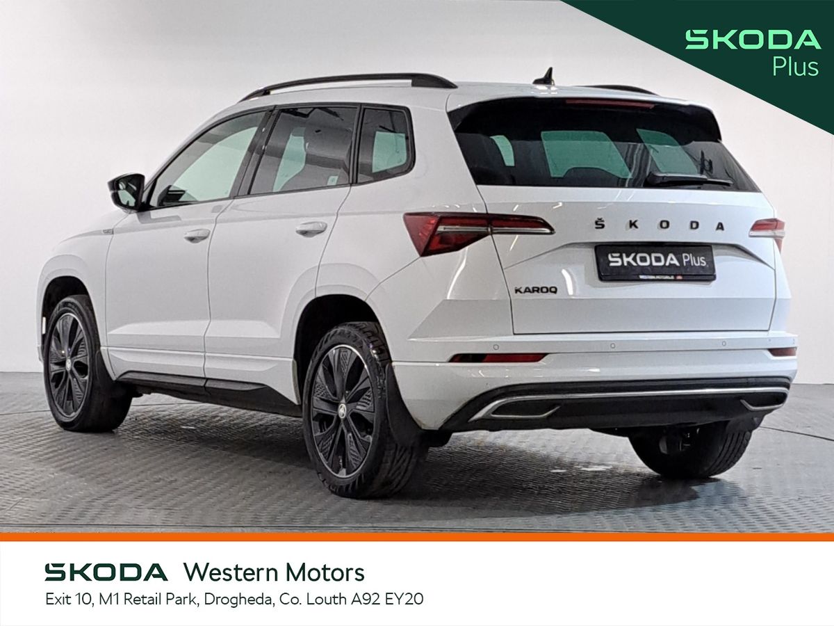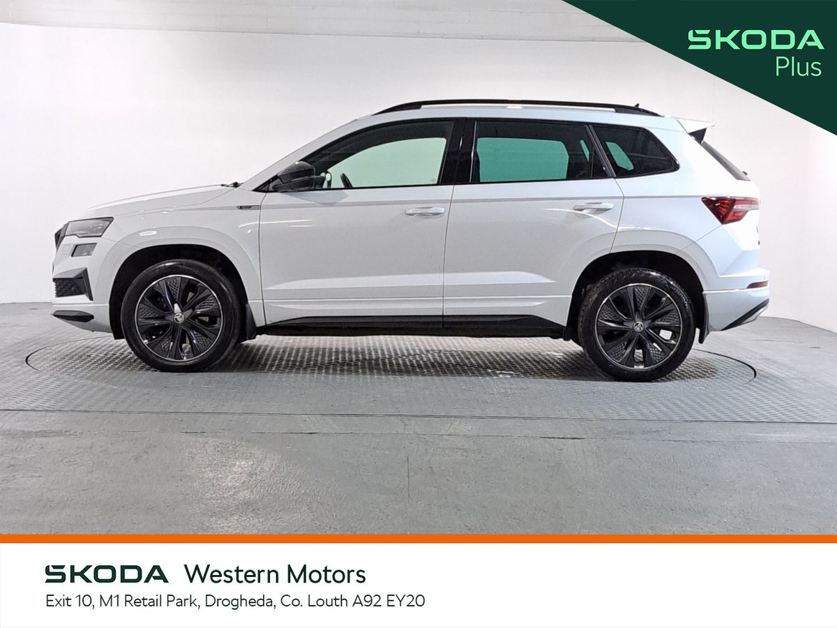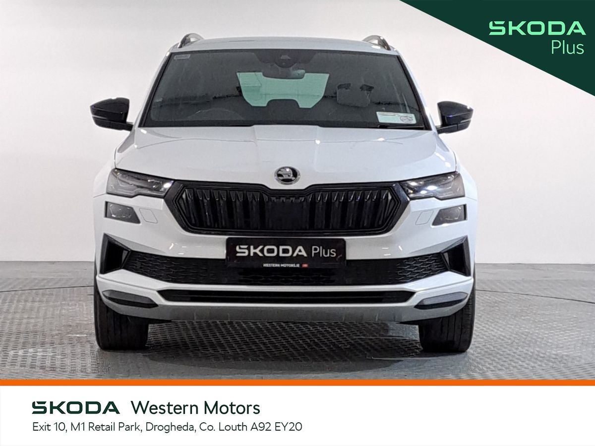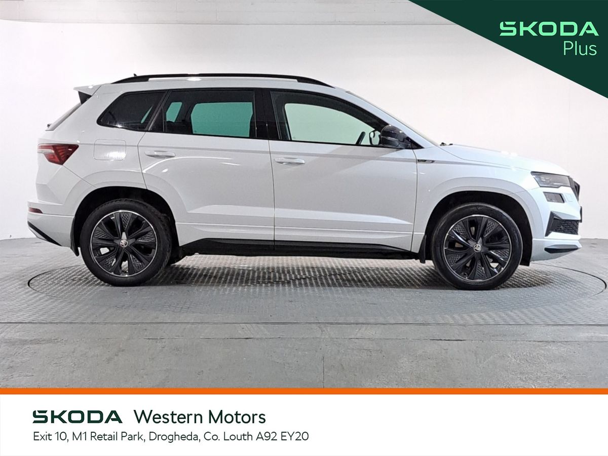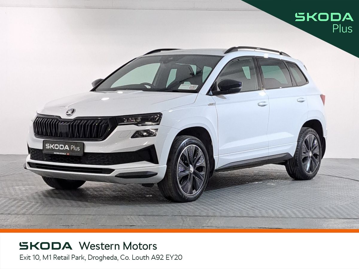 Now available at Western Motors Drogheda is a stunning Karoq Sportline 2.0TDI 115HP DSG finished in Moon White Metallic. This sporty Karoq comes with a rear parking sensors/rear view camera, air con, cruise control, touch screen radio with bluetooth, heated front seats, android auto & apple car play.