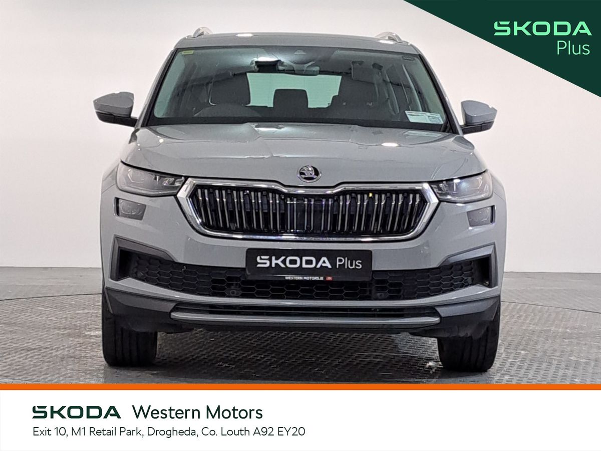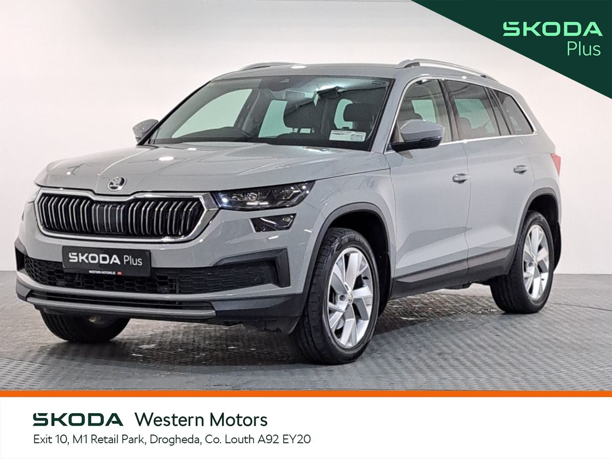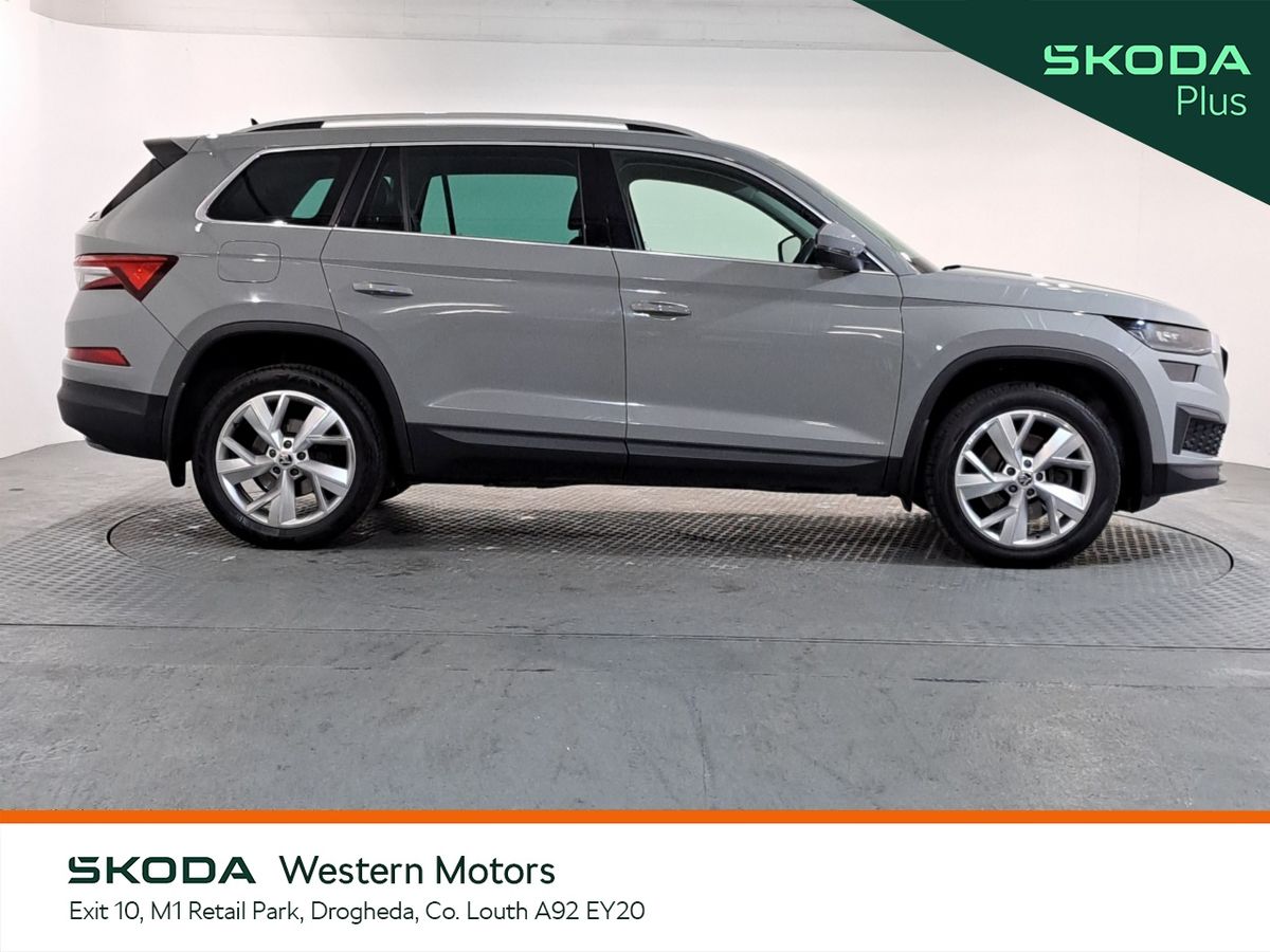 This stunning ŠKODA Kodiaq Style 2.0Tdi 150Bhp DSG 7 Seater finished in Steel Grey is now available at Western Motors Drogheda. This Kodiaq comes with front & rear parking sensors with rear view camera,Cruise Control, touch screen radio with bluetooth, android auto & apple car play, full leather interior with heated seats plus much more.