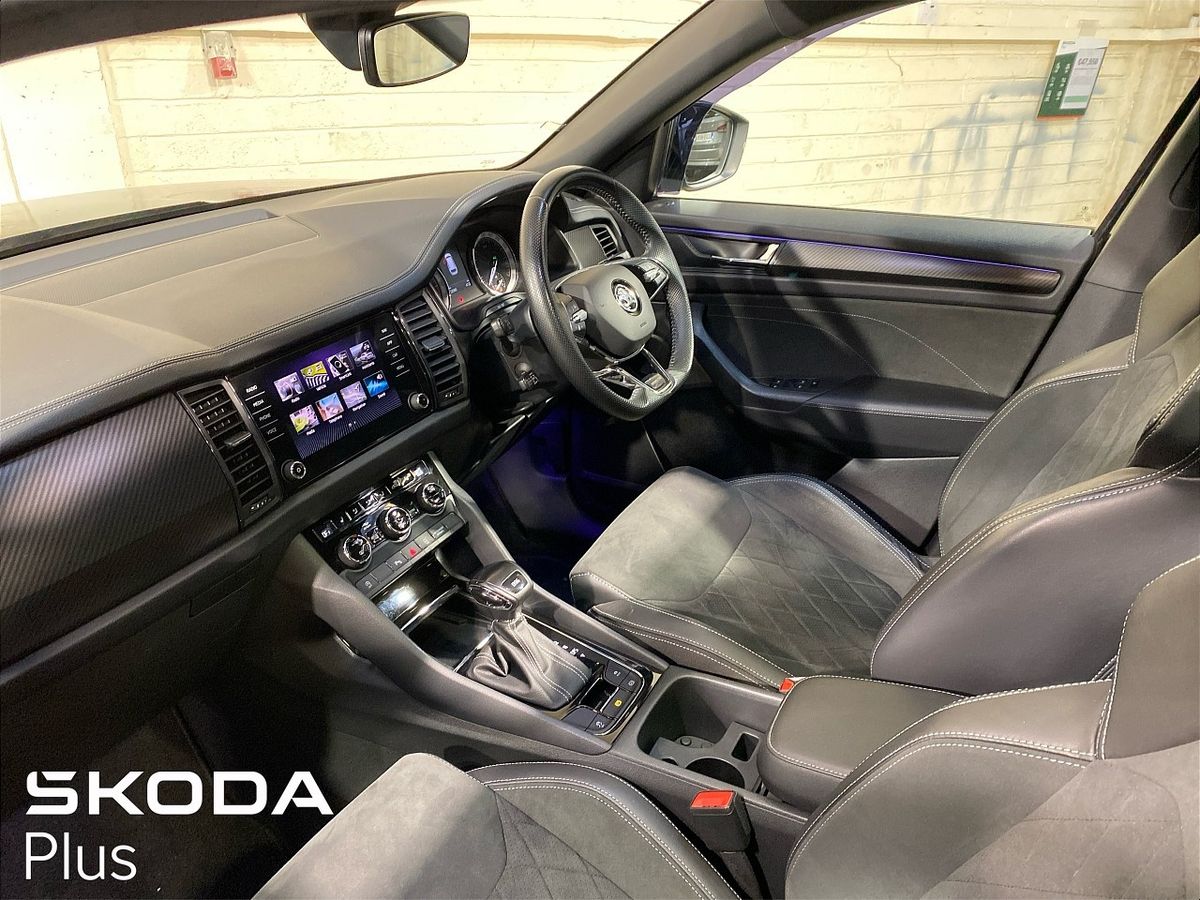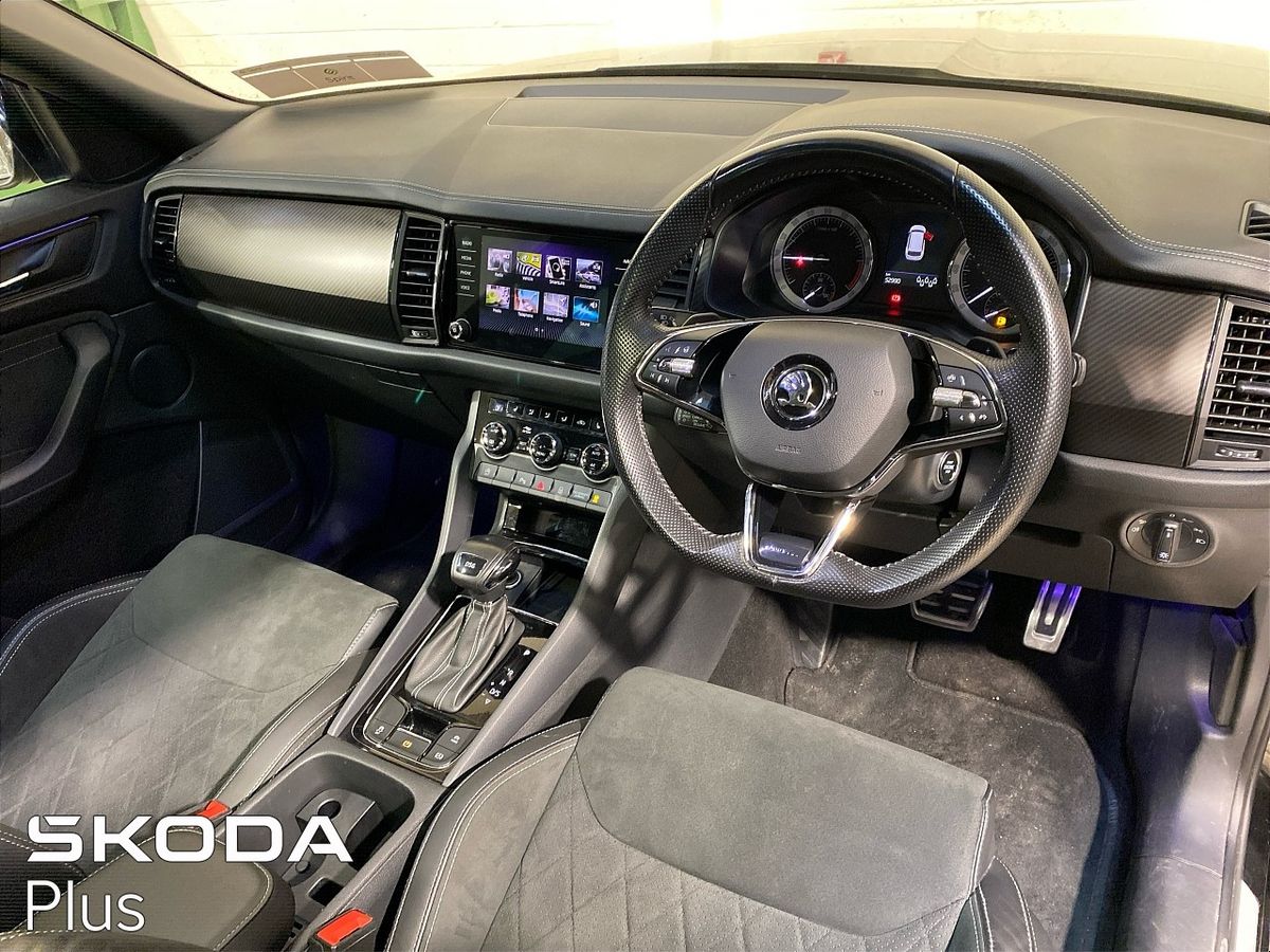 STUNNING KODIAQ SPORTLINE FINISHED IN BLACK METALLIC ,  THIS CAR COMES WITH THE OPTIONAL 20" VEGA ALLOYS,SKODA SIDE STEPS AND ELECTRIC BOOT ,  STANDARD FEATURES INCLUDE- WIRELESS CHARGING,ADAPTIVE CRUISE, HEATED SEATS, HEATED STEERING WHEEL, LED LIGHTS AND OF COURSE 7 SEATS !  IN AS NEW CONDITION THROUGHOUT.. CALL BARRY 01 2163666 OR [email protected] GOES TO ITS NEW HOME WITH 2 YEARS APPROVED USED CAR WARRANTY AND ASSIST