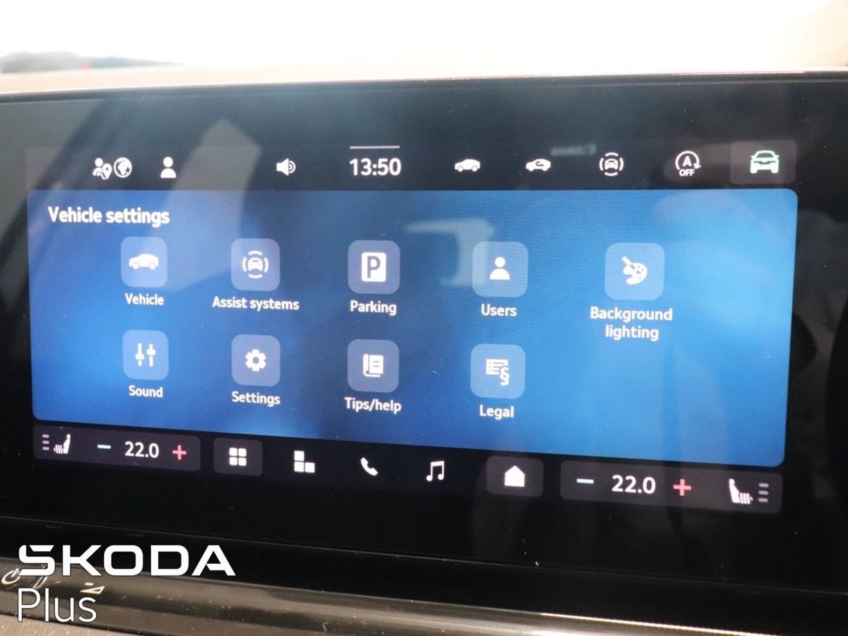 Air conditioning, Climate control, Dual zone climate control, Armrest, Keyless entry, Electric side mirrors, Electric windows, Electric handbrake, Lumbar support, Multi-function steering wheel, Rain sensor, Spare tyre, Android Auto, Apple CarPlay, Bluetooth, 12v power outlet, Radio, Touch screen display, USB connection (front), Wifi, Cruise control, Hill hold assist, Parking camera, Front parking sensors, Rear parking sensors, Speed limiter, Start-stop system, Traffic sign recognition, Voice control, Parking assistance, Digital instrument panel, Alloy wheels, Leather steering wheel, Spoiler, Auto lights (dusk sensor), Daytime running lights, LED headlights, ABS, Anti collision system, Emergency brake assist, Central locking, Remote central locking, Driver-side airbag, Immobilizer, Isofix, Lane departure warning, Tyre pressure monitor, Passenger-side airbag, Seat belt warning, Side airbag, Stability control, Traction control