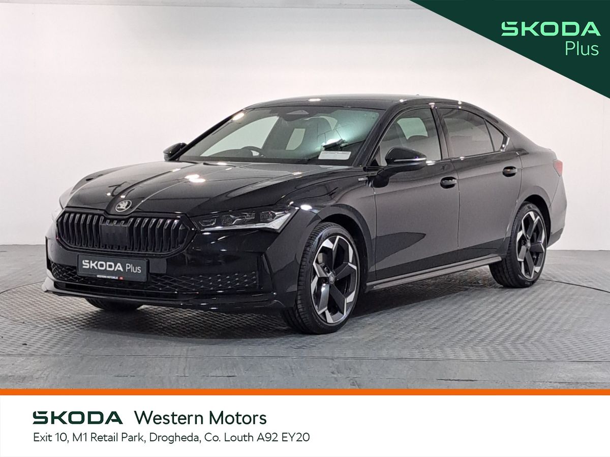 Now available for sale at Western Motors Drogheda a 2026 ŠKODA Superb Sportline 2.0Tdi 150Bhp Automatic . This stunning Superb comes with front & rear parking sensors with rear view camera, air con, touch screen radio with bluetooth, adroid auto & apple car play, lane assist, electic tailgate, heated front electric seats with memory function & massage plus much more. This particular Superb also comes upgraded with the 13" Touch screen radio and sat nav